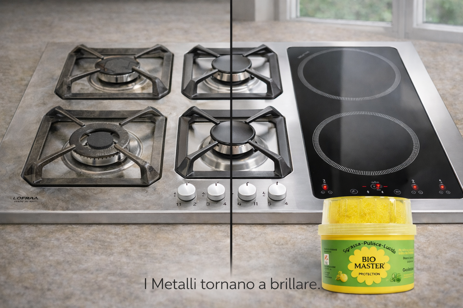 Sì, Bio Master è efficace contro ossidazione, opacità e aloni su superfici metalliche passando dall'acciaio all'oro senza alcuna differenza. I metalli torneranno a brillare ✨