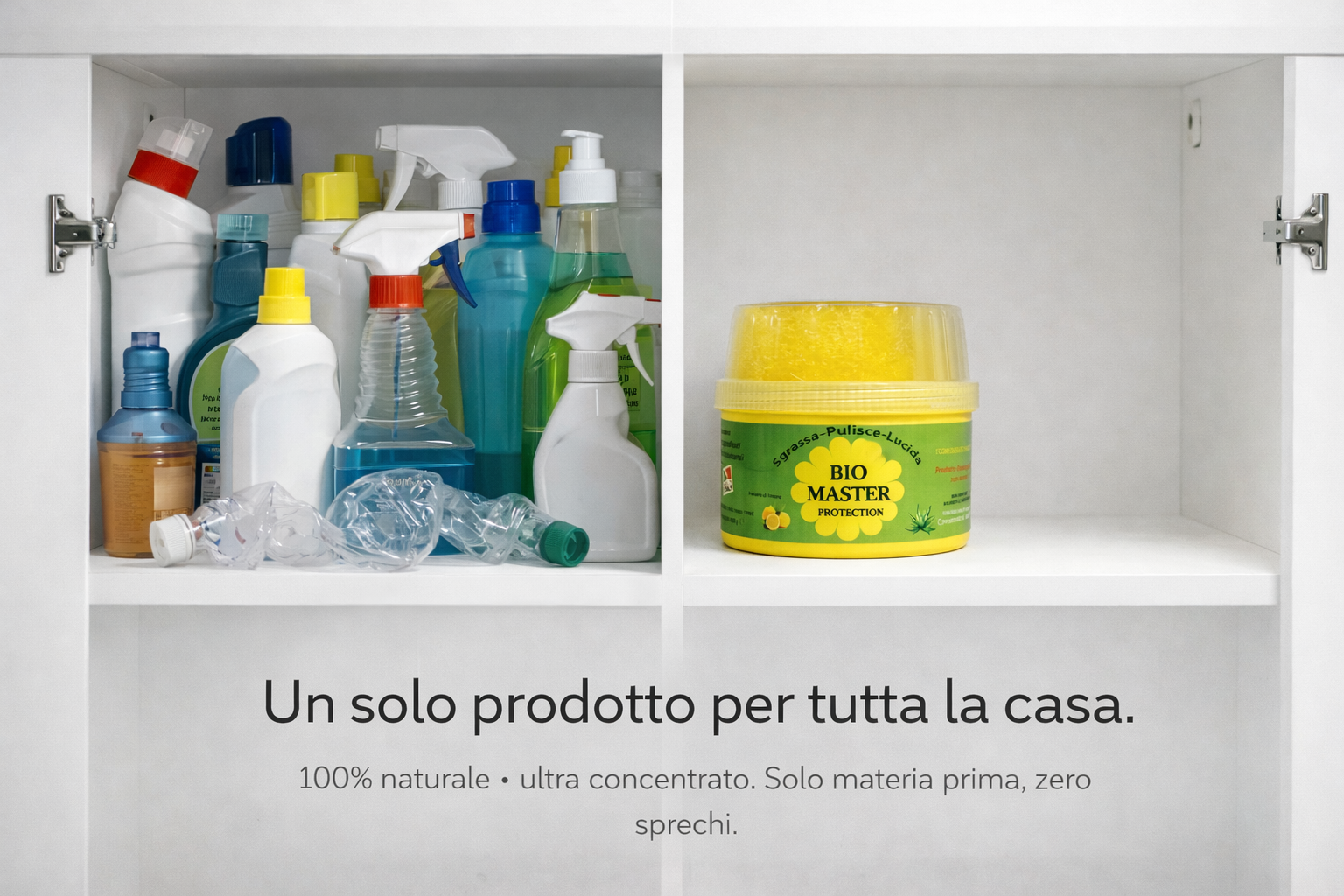 Bio Master è una pasta detergente naturale e multiuso, ecobiologica e ultra concentrata, ideale per pulire, sgrassare e lucidare tutte le superfici della casa con un solo prodotto.